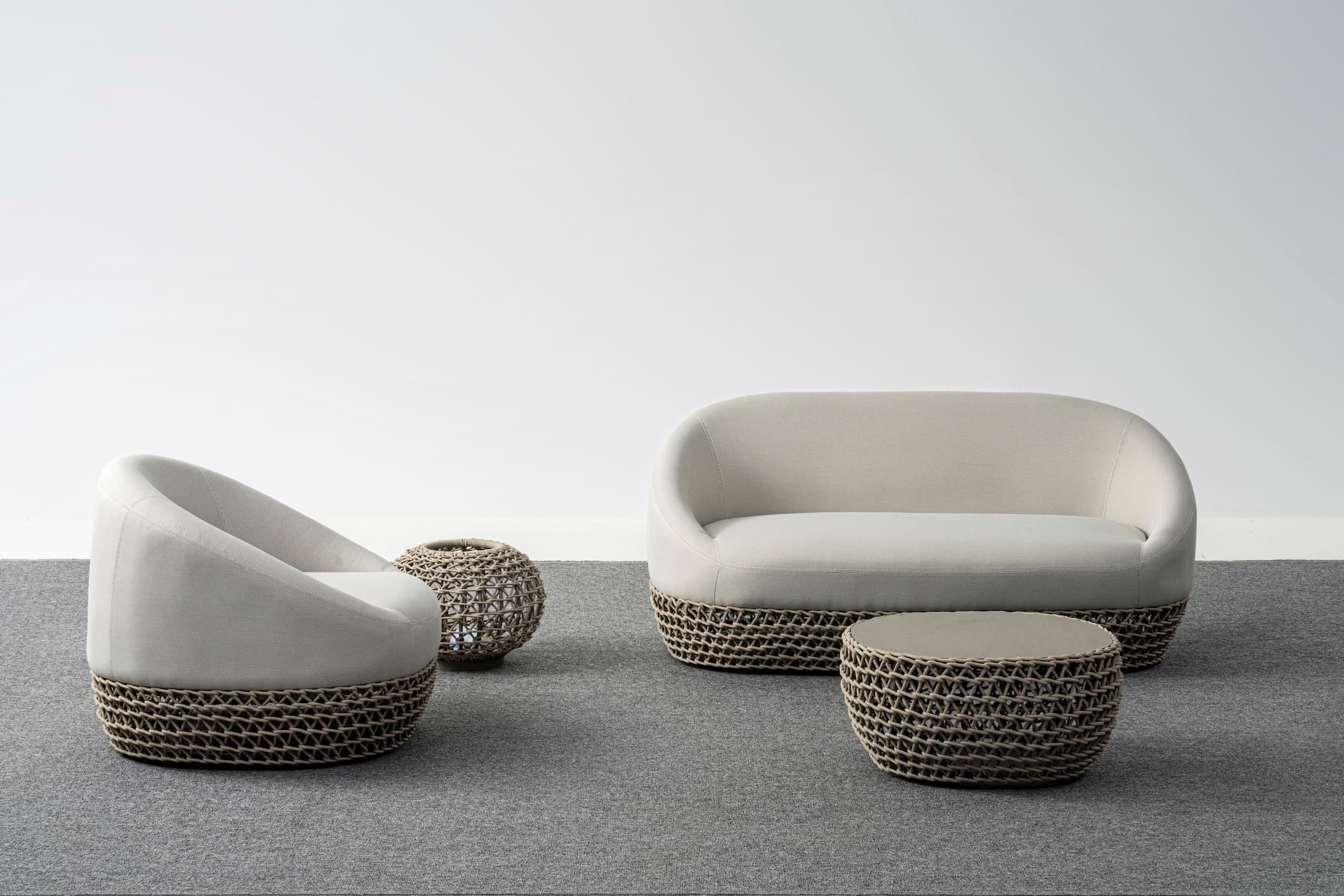 Classic design reinvented for today’s high standards on design, comfort and durability. The firmly and tight upholstered seat section are combined with, a wink to the past, woven base. Couch family consists of numerous different elements to help decorate any outdoor space in its own unique way. Besides the standard elements, the Couch family also contains swivel chairs, outdoor lighting, a huge 4-seater sofa, luxury daybed, double sun loungers and many more. Couch as well as our other upholstered furniture pieces are fully waterproof, thanks to our unique inner lining which prevents water from penetrating trough the fabrics.